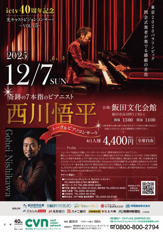 飯田ケーブルテレビは、飯田市の音楽文化の向上を応援する企業として、演者の皆様に発表する場を与え、地元の方々に還元を致しております。
